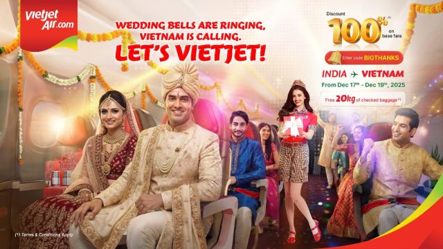 The offer is available from 10:30 pm on 16 December to 9:30 pm on 19 December 2025 (IST) across Vietjet’s entire network, including direct routes from Delhi, Mumbai, Ahmedabad, Bengaluru, Hyderabad, and Kochi to Vietnam’s most-visited destinations including Hanoi, Ho Chi Minh City, and Da Nang. During this period, passengers booking Eco tickets on www.vietjetair.com or via the “Vietjet Air” mobile app can apply the promo code BIGTHANKS to avail discounts of up to 100% on base fares (excluding taxes and fees). The promotional fares are valid for flights between 5 January and 31 December 2026.