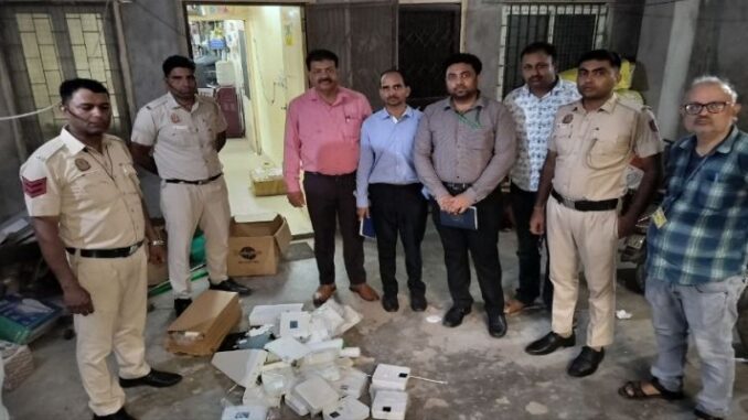 A team from the Wireless Monitoring Organization (WMO), in coordination with Telecom Service Providers, conducted a raid in the New Ashok Nagar Metro Station area of Delhi on 09 July 2025. The operation was led by Shri Devendra Kumar Rai, Deputy Director, International Monitoring Station, Delhi. The objective of the raid was to detect and seize the signal boosters being sold illegally in the market that have been disrupting mobile network services in the area.
